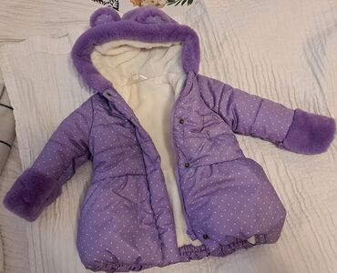 Dečija nova zimska jakna sa kapuljačom – ljubičasta sa belim tačkicama