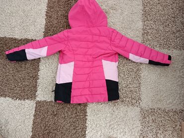 Dečija ski jakna - Veličina: 140 (etiketa vidljiva na fotografiji) - Spoljašnji materijal: vetrootporan, sa visokom prozračnošću. - Topla postava u kontrastno roze boji - Fiksna kapuljača sa pod...