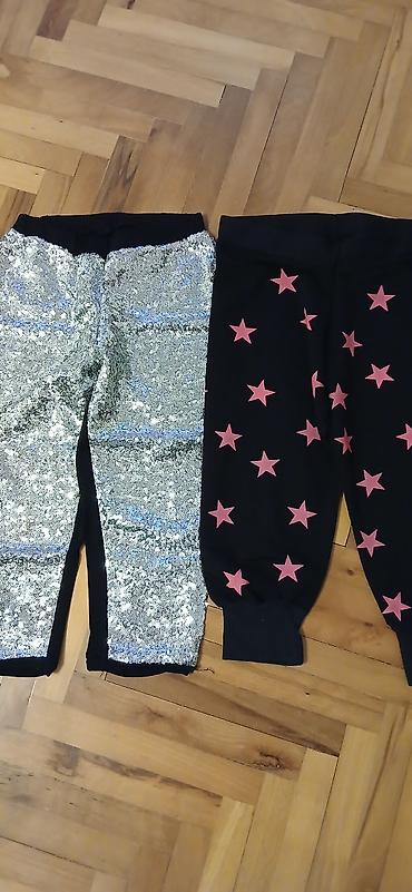 Praktične i udobne za svakodnevno nošenje i scenske/večernje kombinacije. Veličina odgovara mlađoj deci (procena: predškolski/niži razredi – pogledajte mere na fotografijama za orijentaciju). Kombinacija pamuka sa elastinom (zvezdice) i mešavine sa šljokičastim slojem (srebrne).