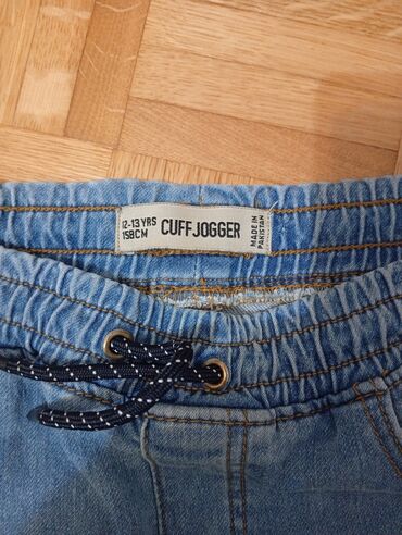 - Detalji: dekorativni štepovi na kolenima, ispran svetloplav/teksas izgled