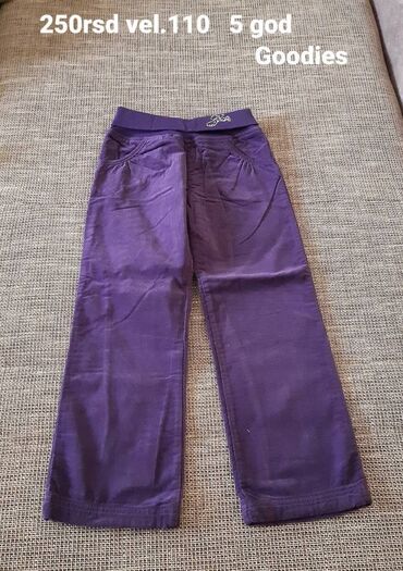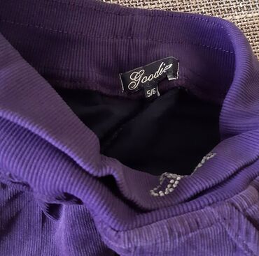 LjubičastaDečije pantalone od somota u ljubičastoj boji, marke Goodie. Veličina 5/6, pogodne za decu uzrasta oko 5 godina, visine oko 110 cm. Pantalone imaju elastičan pojas i džepove, što ih čini praktičnim za svakodnevno nošenje. Izrađene su od somota, materijala koji pruža udobnost i toplinu.