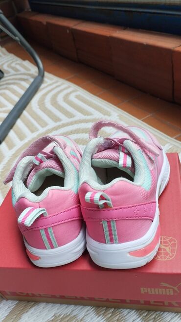 - Dizajn detalji: ukrasne trake na jeziku i peti u ružičasto‑mint kombinaciji, reljefne zvezdice sa strane pete, povlačnik na peti za lakše obuvanje