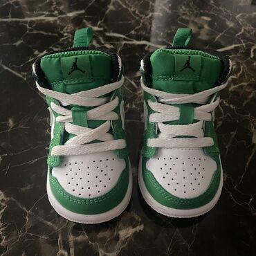 Stajliš i udoban model za prve korake, sa prepoznatljivim Jordan izgledom u svežoj zeleno-beloj kombinaciji.