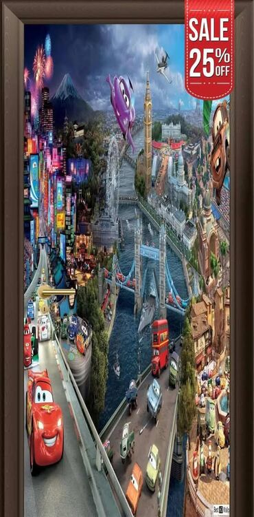 Ukras za zidDečije samolepljive 3D nalepnice za vrata – set motiva iz popularnih crtanih filmova.
