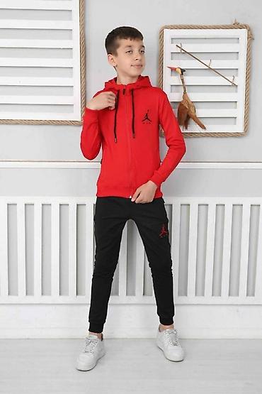 Dečije trenerke – gornji deo sa kapuljačom i donji deo sa ranflama - Modeli: The North Face i Air Jordan - Komadi u setu: dukserica sa kapuljačom + donji deo trenerke sa elastičnim pojasom i manže...