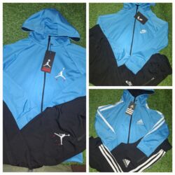 Komplet trenerki za bebe (više modela, 6–9 meseci) 1) Adidas komplet - Plavi gornji deo sa velikim adidas logoom; praktično kopčanje na ramenu sa dva drikera. - Donji deo tamnoplave trenerke sa el...