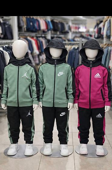 Dečiji trodelni sportski komplet (trenerka + majica + gornji deo na rajsferšlus) - Brend motivi: Nike ili Adidas (štampani logotipi na majici, gornjem delu i nogavicama) - Sastav: mekani pamučni d...