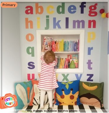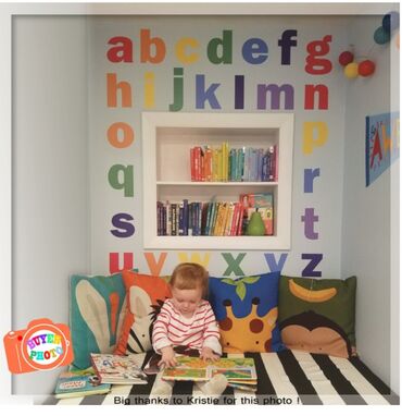Šarene, jasne boje i čitka tipografija podstiču rano opismenjavanje i ulepšavaju prostor. Idealno za postavljanje oko police, radnog stola ili igre. Na fotografijama je set Engleskog alfabeta a na zahtev mozete poruciti Srpsku abecedu ili cirilicu.