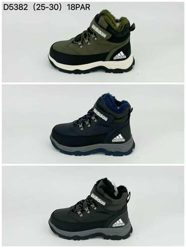 Dečije zimske čizme Adidas – model D5382 (brojevi 25–30) - Dizajn: planinarski/treking stil do članka, sa Adidas logotipom sa strane i na čičak traci. - Kopčanje: kombinacija elastičnih pertli kro...800 RSD