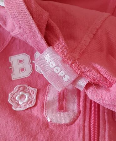Dečiji komplet trenerke (duks + donji deo) za uzrast oko 2 godine. - Materijal: mekani frotir/pliš za udobnost i toplinu - Boje: breskva sa svetložutim panelima i svetloplavim porubima/manžetnama ...