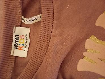 - Gornji deo: KOTON Kids dukser, veličina 9–10Y (134–140 cm), proizvedeno u Turskoj. Boja prljavo roze, print sa cvetićima i natpisom “Always Feeling Good”. Ravan kroj, okrugao izrez, rebrast ranfle na rukavima i donjem rubu, mekana unutrašnjost.
