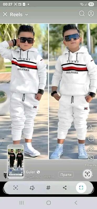- Tommy Hilfiger stil – bela i tamnoplava varijanta, sa prugama na grudima i logom na dukserici i nogavici.