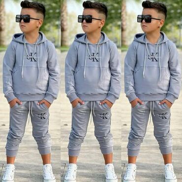Druga veličina (visina u cm)Dečije trenerke – komplet dukserica sa kapuljačom i donji deo sa učkurim i džepovima. Moderni sportski kroj sa ranflama na rukavima i nogavicama. Mekan, udoban materijal pogodan za celodnevno nošenje.