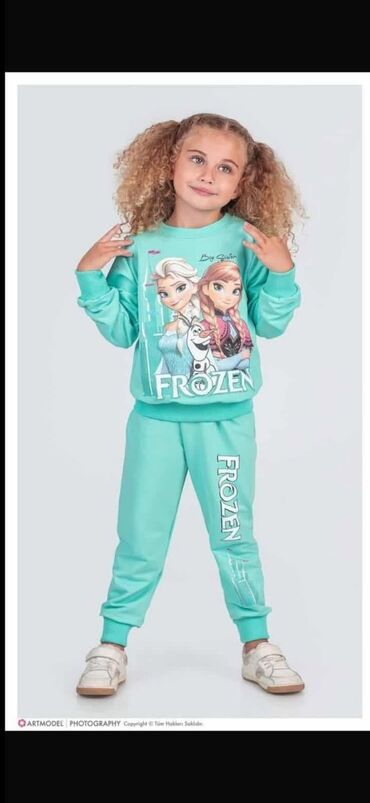 DizniDečiji komplet trenerke sa motivom Frozen, idealan za devojčice. Trenerka je izrađena od mekog materijala i sastoji se od gornjeg dela dugih rukava i donjeg dela sa elastičnim pojasom. Gornji deo krasi štampani motiv omiljenih likova iz crtanog filma "Frozen", dok je na donjem delu nogavice ispisano "Frozen". Praktičan i udoban izbor za svakodnevne aktivnosti i igru.