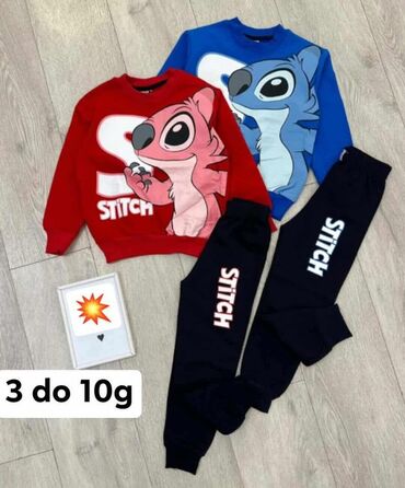 ✅ Stitch – kompleti dukse+ donji deo - Uzrast: od 3 do 10 godina (naznačeno na fotografijama) - Modeli: više varijanti sa natpisima “Aloha!” i “Stitch”, različite kombinacije boja (bež sa plavim p...