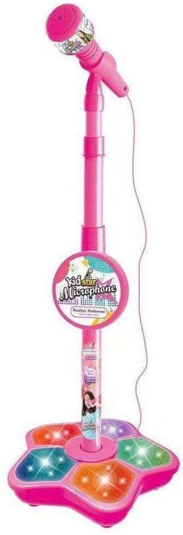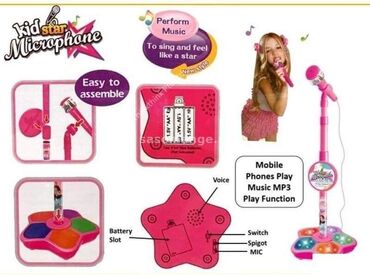 Ovaj Kid Star mikrofon je odličan za navođenje vaše dece da pevaju. Opremljen je linijom za povezivanje na funkciju MP3 reprodukcije mobilnih telefona. Svetla će treptati dok pevate uz svoje omiljene pesme. Cela jedinica je lako prenosiva i dovoljno lagana da je nosi dete. Ponesite ga na odmor sa porodicom ili pustite decu na svetsku turneju, sa zaustavljanjima u svakoj prostoriji kuće. Vaše dete će uživati.