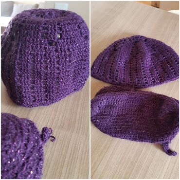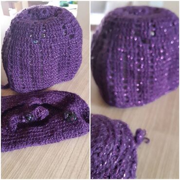 122-128Pleteni komplet – kapica i nazuvice, ručni rad, ljubičasta pređa sa diskretnim sjajem.