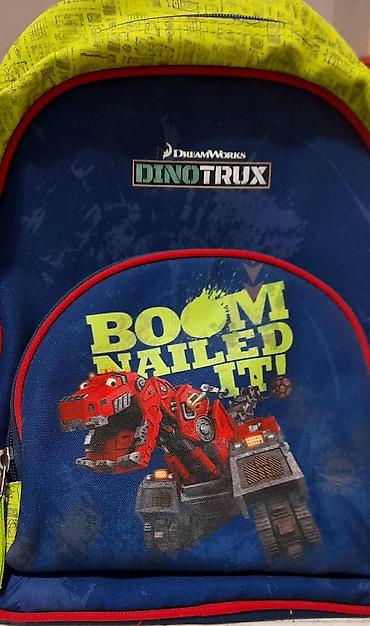 Dečji ranac sa dinosaurus motivom - Dizajn: ilustracija veselog dinosaurusa na prednjem panelu, kombinacija tamnoplave i narandžaste boje. - Pregrade: dve glavne pregrade sa rajsferšlusom + prednj...