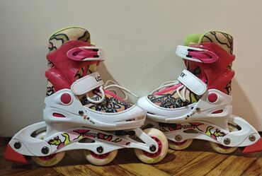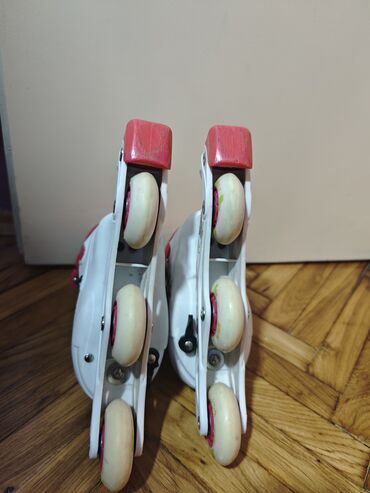 - Točkovi: 4 poliuretanska točka po roleru, bela osnova sa fluorescentnim detaljima; zadnja nožna kočnica