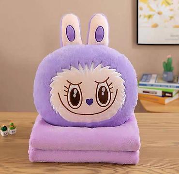 - Jastuk u obliku plišanog lika sa ušima, u nežno ljubičastoj boji. Površina je baršunasto meka, sa velikim vezom očiju i srcastim nosićem; pogodan za oslonac vrata ili dekoraciju dečje sobe.
