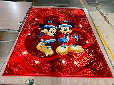 - Veliko crveno pokrivač/ćebe sa motivom Mickey i Minnie, sjajnog finiša i bogatim printom cvetova i zvezdica; pogodna za dečje sobe i kao dekorativni prekrivač.