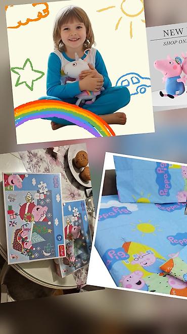 - Dizajn: šareni motivi Pepa Praseta i porodice, vedre boje (plava, zelena, narandžasta, žuta) sa suncem i oblačićima – idealno za dečju sobu.