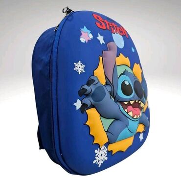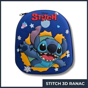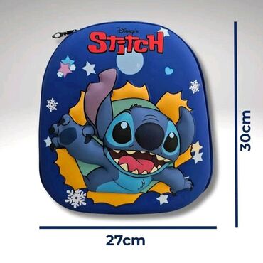 - Ranac: kompaktan i lagan, u tamnoplavoj boji sa 3D prednjom stranom i motivom „Stitch“. Ima čvrstu ručku za nošenje, dvosmerni rajsferšlus, mrežaste bočne strane radi prozračnosti i podesive naramenice sa kopčama. Oblik školjke štiti sadržaj i zadržava formu.