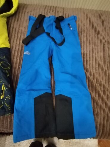 - Pantalone: plave McKINLEY ski pantalone sa crnim ojačanjima na donjem delu nogavica. Prilagodljive elastične tregere (naramenice) i rajsferšlus/džep na desnoj strani. Pojas sa petljama za kaiš.