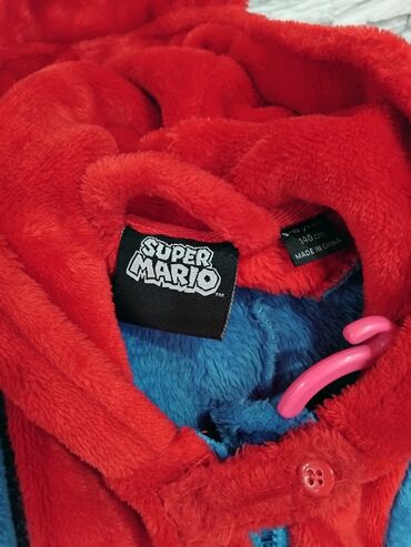 - Model: zvanično brendirani Super Mario kombinezon sa kapuljačom (aplikacija sa „M“ na kapuljači, izvezen „Super Mario“ logo napred)