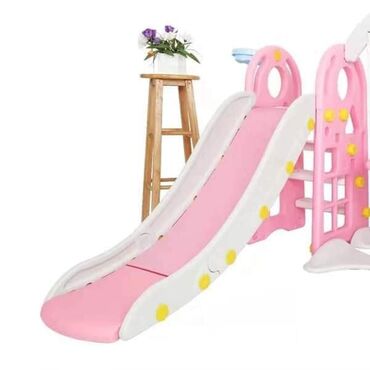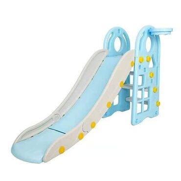 Dečiji tobogan je dimenzija 158x66x100cm. Sa bočne strane tobogana je postavljen koš za malu loptu.