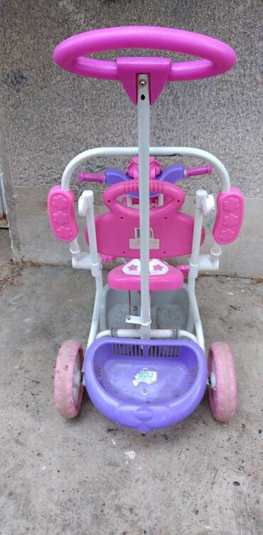 UpotrebljenоDeciji tricikl ,duz. oko 85,sir. oko 41,vis. sedista oko 35 cm. sa nogostupima