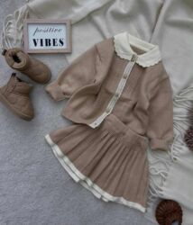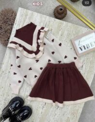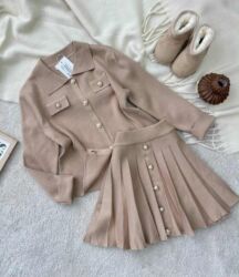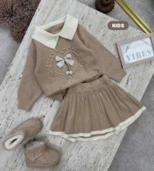 Elegantni dečiji trikotažni kompleti za devojčice, idealni za jesen/zimu. Svaki set sadrži džemper/bluzu i plisiranu suknju od mekog, elastičnog pletiva koje greje i omogućava slobodu pokreta.