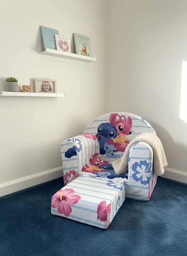 Dečija fotelja sa motivima popularnog crtanog filma. Komplet uključuje fotelju i tabure, idealno za dečiju sobu kao udobno mesto za sedenje i opuštanje. Roze boja sa likovima Stiča i Anđela.