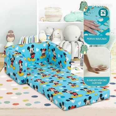 Dečiji sklopivi mini krevet–sofa - Udobna dvosedska sofa za decu koja se lako pretvara u ležaj rasklapanjem sedišta. - Lagana pena/ sunđerasta konstrukcija – bez tvrdih ivica, bezbedna za igru i o...