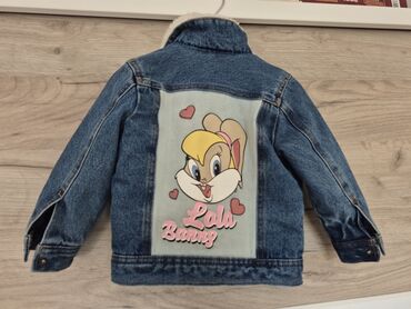 Dečija zimska jakna + prsluk - Jakna sa kapuljačom, brenda The Arttu Jacket (etiketa na slici). Veličina 110 (za visinu oko 104–110 cm). Svetloružičasta osnova sa cvetnim i leptir dezenom. Topla, ...