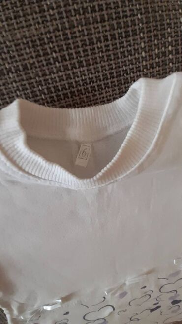 Dečja tunika, veličina 6. Belo gornjište sa dugim rukavima i okruglim