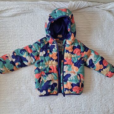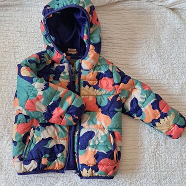 Jakna za devojčice 4/5 Odlicno ocuvana, topla. Model parke Maslinasto zelena sa cvetnim motivima Bez ikakvih oštećenja snizena
