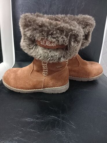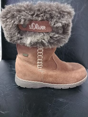 Dečje zimske čizme s.Oliver - Model: s.Oliver TEX - Veličina: 28 (otisnuto na đonu) - Materijal spolja: braon brušena koža/velur - Postava: topla, mekana veštačka krzna u sivo-braon tonu, obod se ...