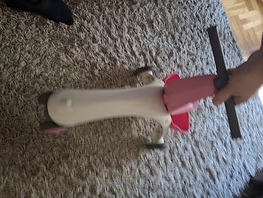 - Boje: belo telo, roze sedište i korpica, sivi upravljač