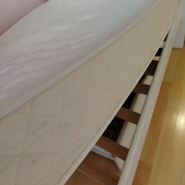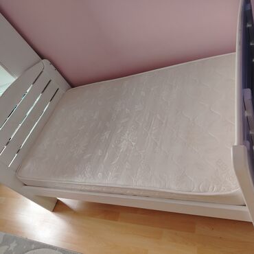 - Madrac: uključen, svetle boje sa diskretnim floralnim dezenom; standardne debljine, odgovara prikazanom krevetu.