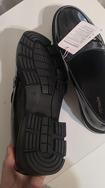 Elegantne crne lakovane mokasine sa zlatnim metalnim ukrasom i robusnijim đonom za celodnevnu udobnost i sofisticiran izgled.