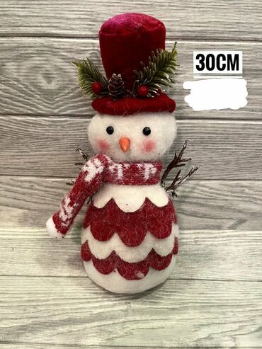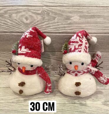 - Dizajn: više varijanti sneška sa crveno‑belim zimskim kapama i šalovima; mrkva‑nosić, crne perlice‑oči, ružičasti obrazi