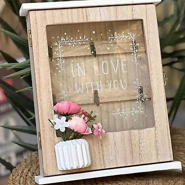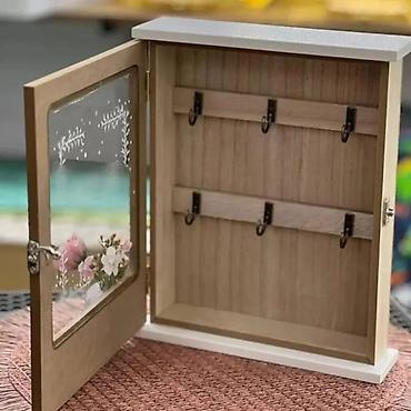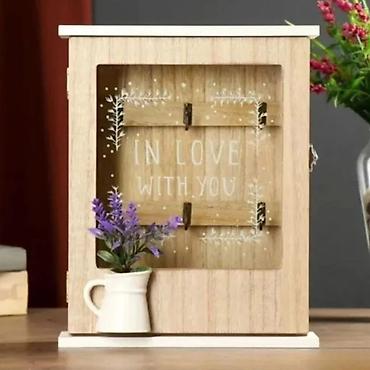 Unesite red i eleganciju u svoj dom uz dekorativnu drvenu kutiju za ključeve sa staklenim vratima. Dizajnirana u rustičnom stilu sa šarmantnim cvetnim motivom, ova kutija je savršen spoj praktičnosti i dekoracije.