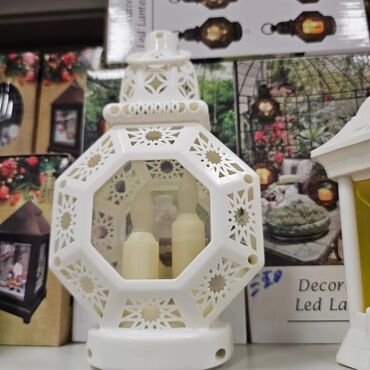 Dekorativne LED fenjer-lampe – više modela - Materijal: čvrsta plastika u beloj boji, prozirni paneli (neki modeli sa obojenim panelima – npr. narandžasti). - Izvor svetla: LED „sveće“ sa efektom ...