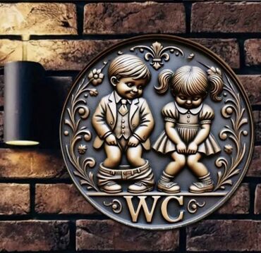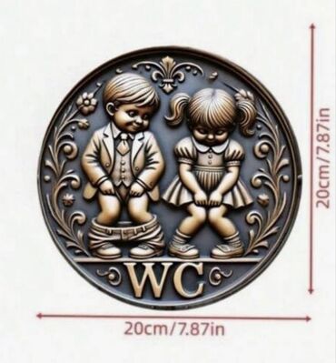 - Dizajn: dečak i devojčica u retro stilu, ukrasni floralni ornamenti, natpis “WC”
