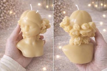 Dekorativna sveća – bista devojke sa ružama - Ručno izlivena