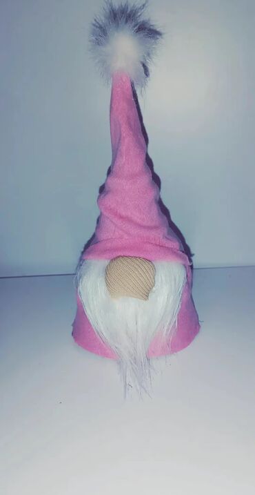 - Boje: roze (kapa i telo), belo (brada i pompon), bež (nos)