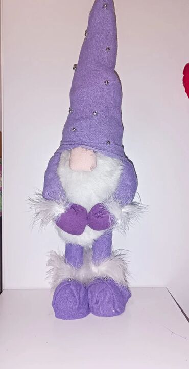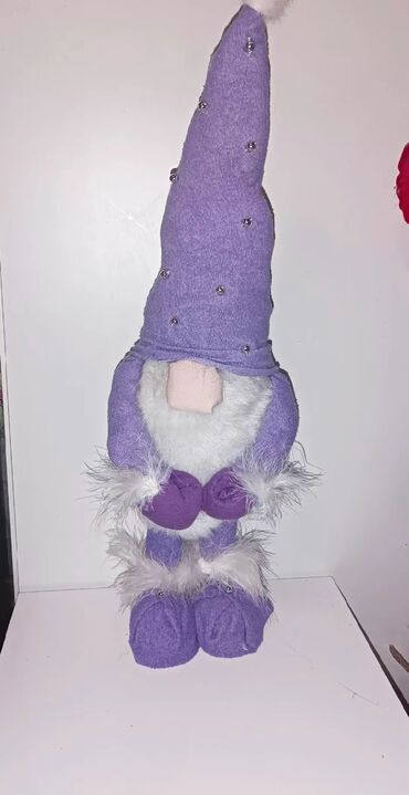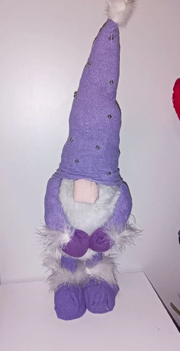 - Visok patuljak sa šiljatom kapom u svetloljubičastoj boji ukrašenom sitnim metalnim kuglicama i belim pufnastim vrhom.