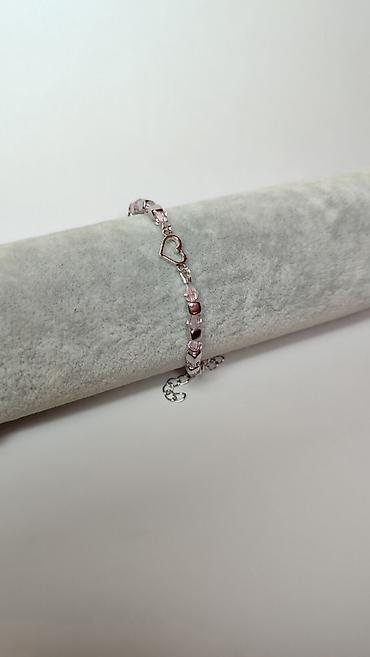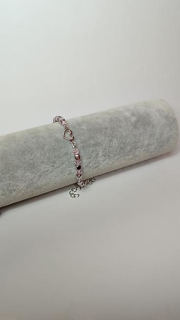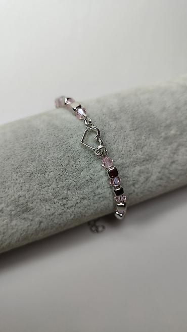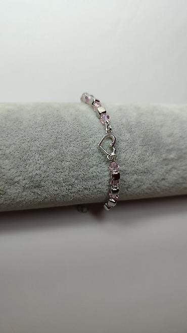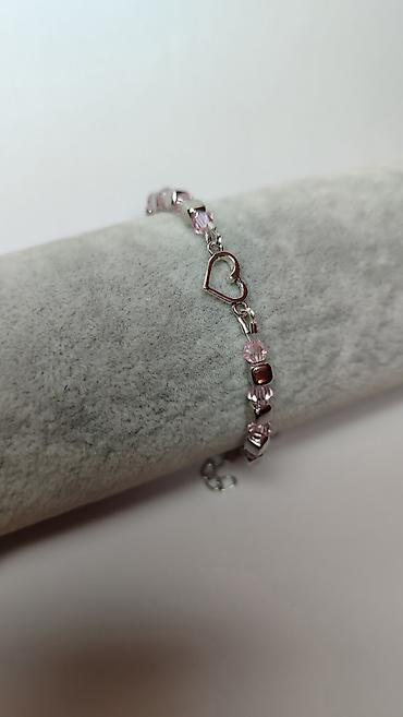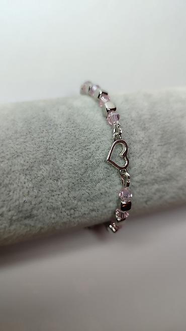 Delikatna narukvica sa ružičastim perlama i motivom srca