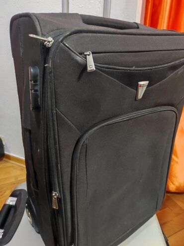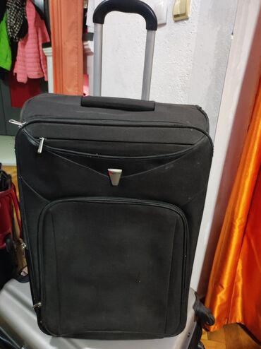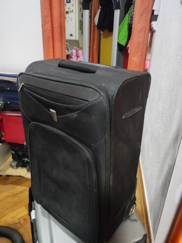 Dimenzije nisu naznačene na oznaci, ali kofer je kategorije velikog kofera (checked-in). Crna boja olakšava kombinovanje i održavanje, a spoljašnji džepovi su praktični za dokumenta i sitnice tokom putovanja.